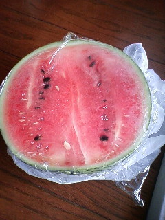 このスイカより前に、ソフトボールくらいのスイカが熟したので食べたのですが、